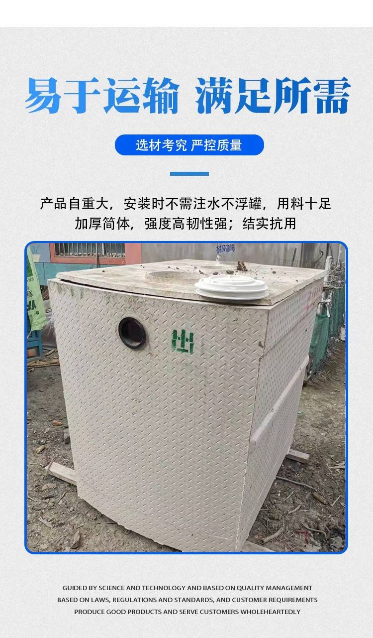 然而,水泥化粪池也存在一些缺点。例如,虽然其选用高强度钢筋混凝土材料,但在长时间使用后,仍可能出现裂缝或渗漏问题,对环境造成污染。同时,其内部容易积聚污垢,清理起来可能较为困难。